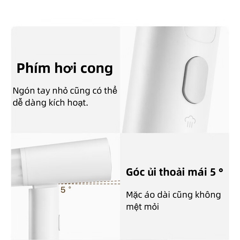 Tay cầm được bố trí nút điều khiển có phần hơi cong, vừa vặn với ngón tay người dùng, dễ dàng thao tác và kích hoạt hơn. Đặc biệt góc ủi cũng được thiết kế thoải mái 5° giúp bạn có thể cầm nắm thoải mái, ủi nhiều quần áo trong thời gian dài mà không lo mỏi tay.