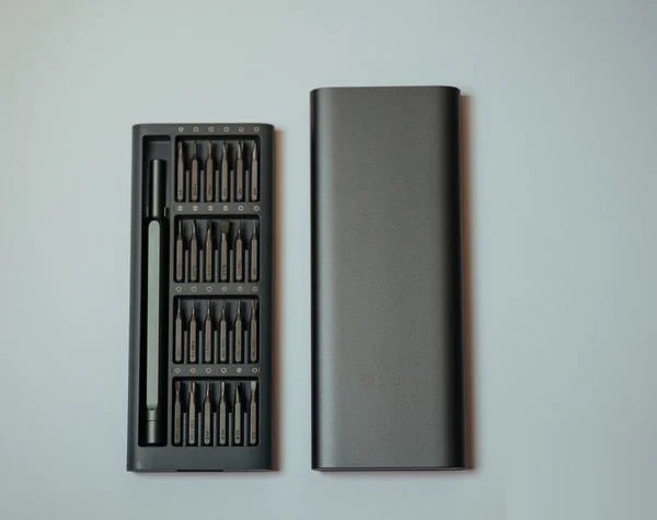 Tua vít được thiết kế dạng oval mỏng, nhỏ gọn, với đầu vít được gia công kỹ lưỡng có độ chính xác cao. Toàn bộ 24 đầu vít được đựng trong hộp chứa hình chữ nhật nhỏ gọn. Tổng trọng lượng bộ sản phẩm chỉ có 300g cùng thiết kế gọn gàng giúp người dùng dễ dàng bỏ túi và mang theo bất cứ đâu.