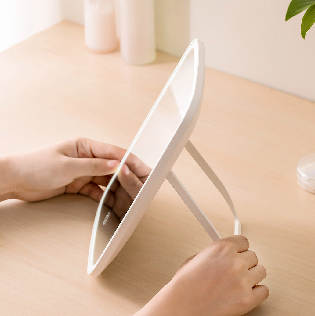 Gương tích hợp LED Jordan July NV026 ra đời với thiết kế dạng chữ nhật đứng, bo tròn các góc với kích thước 238 x 168 x 25mm, độ dàu gương chỉ 2mm và nặng khoảng 370g, tương đương với một quyển sổ tay. Phía sau có khung chân đóng mở linh hoạt, giữ gương đứng ở nhiều góc nghiêng một cách vững vàng. Điều này giúp bạn thuận tiện cho vào túi xách và mang đi khắp nơi mà không lo cồng kềnh hay vướng víu.