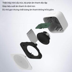 Sở hữu thiết kế quen thuộc đến từ nhà Xiaomi như tone màu trắng, hình vuông bo tròn các cạnh, Loa Bluetooth mini Xiaomi mang đến cho người dùng sự tối giản, sang trọng nhưng cũng không kém phần trẻ trung, năng động. Với kích thước chỉ 52 x 52.7 x 27mm, bạn có thể dễ dàng mang theo bên cạnh mình như một chiếc móc khóa sử dụng mọi lúc mọi nơi hặc tùy ý đặt ở bất cứ đâu mà không lo tốn diện tích.
