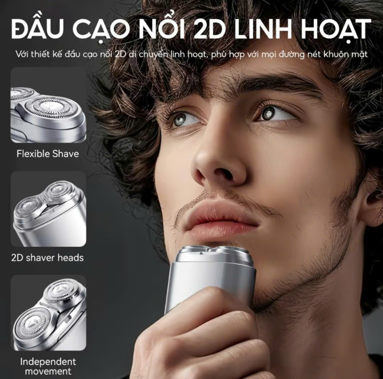 – Đầu cạo nổi 2D: 2 đầu cạo nổi độc lập tích hợp lò xo đàn hồi của máy cạo râu Enchen có thể tùy chỉnh linh hoạt theo đường nét khuôn mặt, giúp tiếp cận và cạo sạch mọi vùng râu mọc một cách dễ dàng và hiệu quả.
