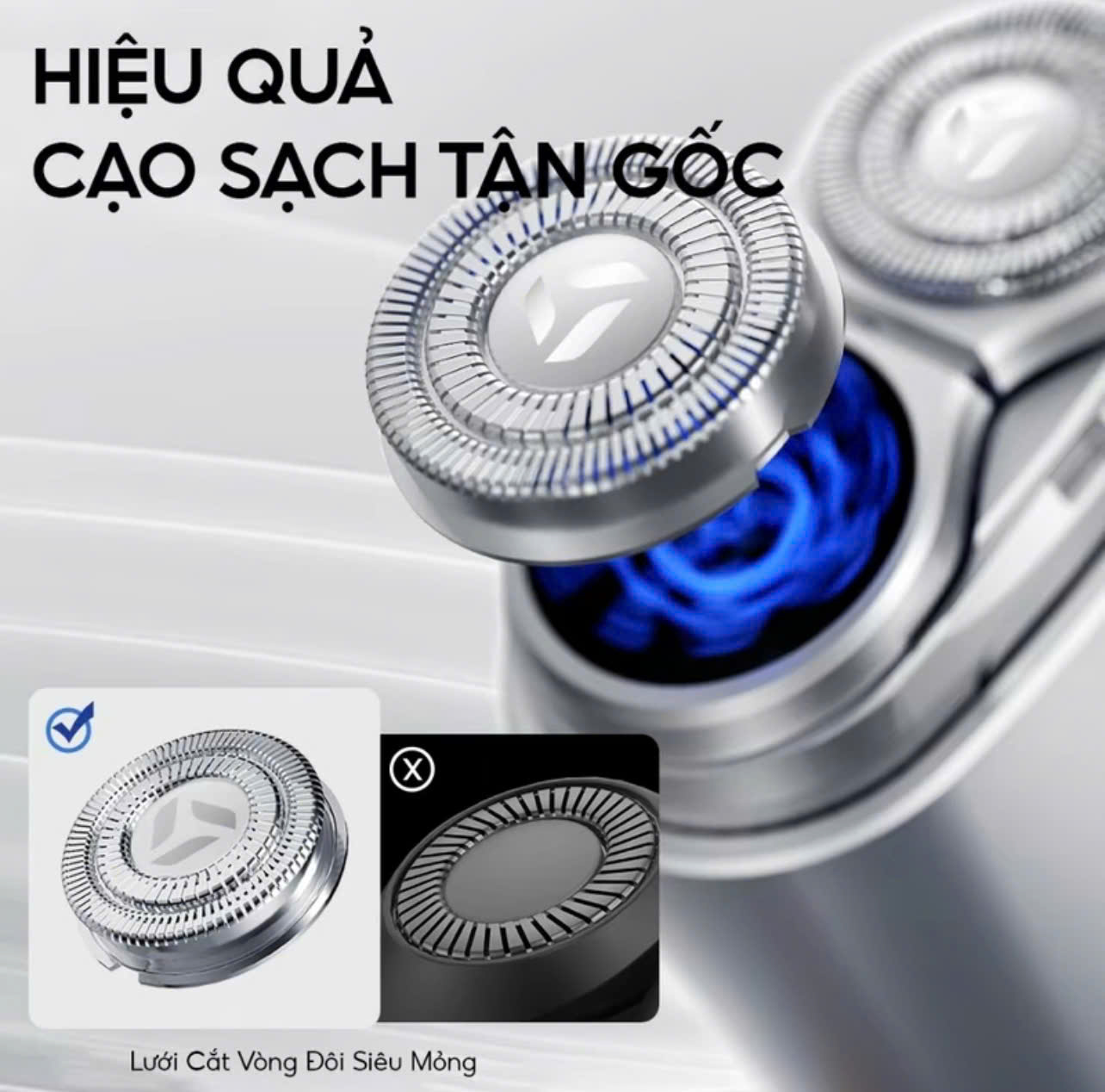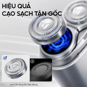 – Lưỡi Cạo Siêu Mỏng: Lưỡi cắt với thiết kế vòng đôi siêu mỏng giúp tăng diện tích tiếp xúc và cải thiện hiệu quả cạo râu, mang lại trải nghiệm cạo râu nhanh chóng và tiết kiệm thời gian.