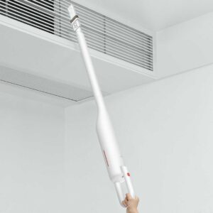 Máy hút bụi Deerma VC01 được lấy cảm hứng chế tác từ hình dáng chai rượu vang nên rất gọn đẹp, tinh tế, màu trắng trên vỏ máy cùng đường nét trơn tru cho thiết kế hiện đại, sang trọng. Khối lượng chỉ 1.6 kg cực thoải mái cho việc cầm nắm và di chuyển.