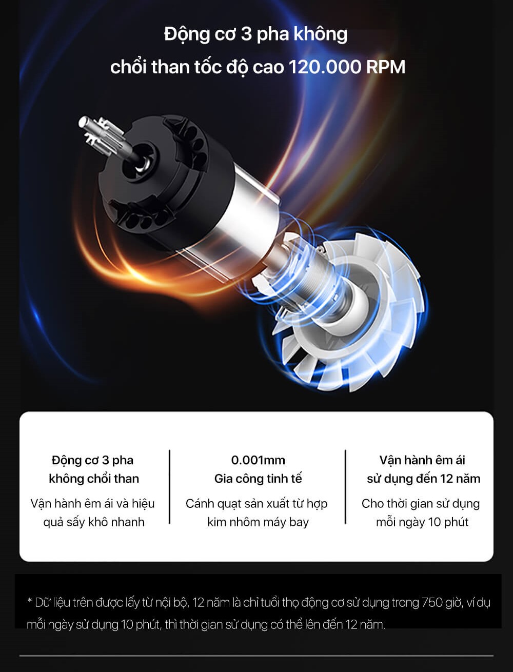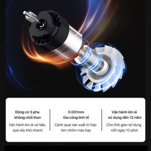 - Động cơ không chổi than hoạt động êm ái 120.000 vòng/phút
