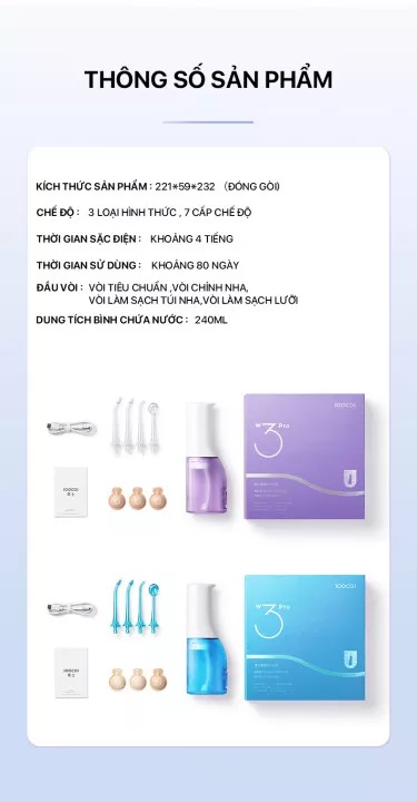 Thông số kỹ thuật tăm nước Xiaomi Soocas W3 Pro – bản nội địa