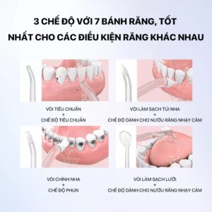 Tăm nước Xiaomi Soocas W3 Pro chính là giải pháp tốt ưu và hiệu quả với trang bị 3 cơ chế hoạt động cùng 7 cường độ khác nhau, tùy vào nhu cầu sử dụng mà người dùng có thể lựa chọn các mức phù hợp để giải quyết các vấn đề răng miệng một cách tốt nhất và triệt để.