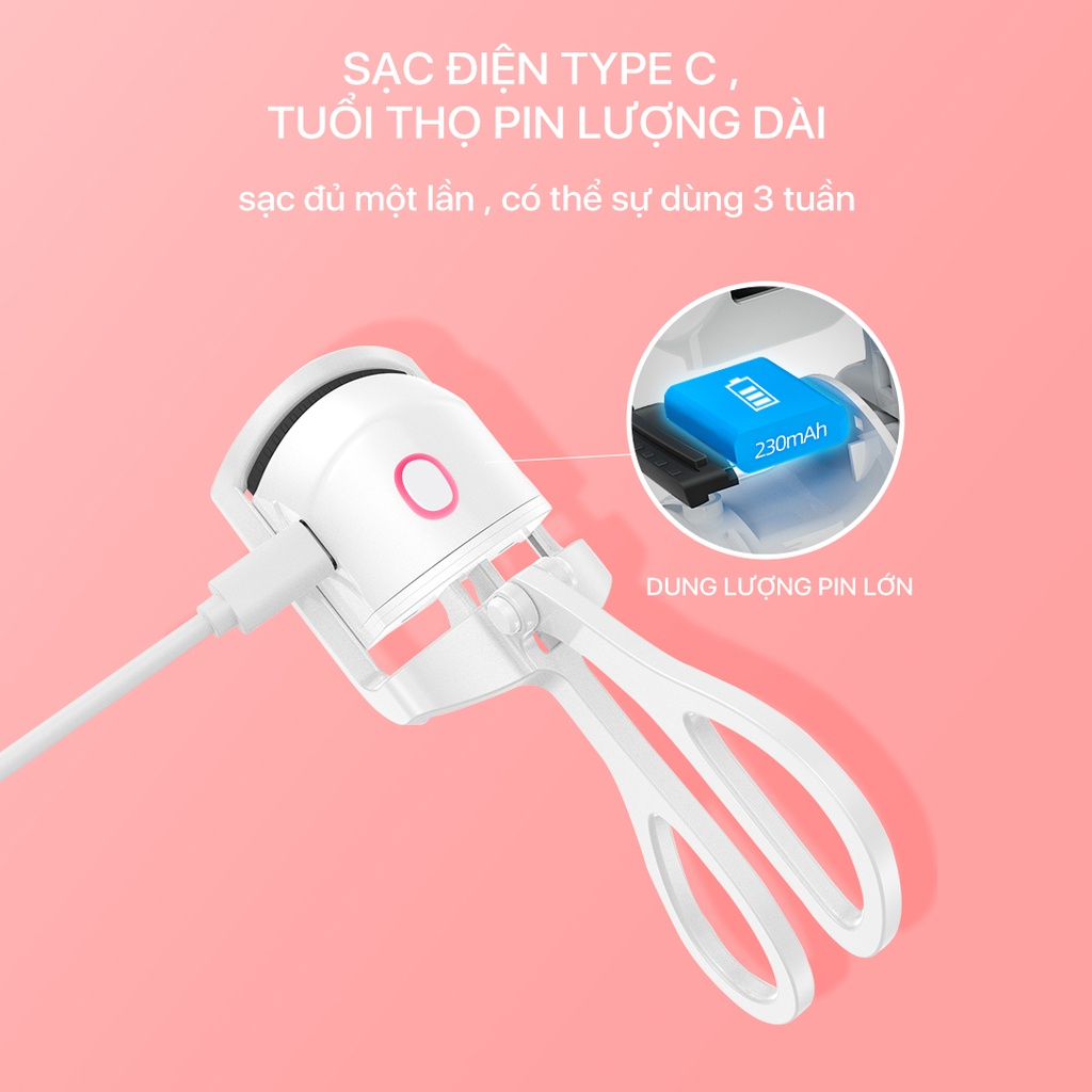 Máy Uốn Mi Nhiệt BOMIDI EC1 với thiết kế nhỏ gọn đơn giản nhưng vẫn mang tính tiện dụng cao, thiết kế với 2 màu sắc trắng và hồng cá tính nổi bật. Giúp các cô nàng có thể lựa chọn theo sở thích riêng, bên cạnh đó việc sử dụng máy và mang theo di chuyển cực kì dễ dàng. Với kích thước 80*45*156mm tương đương với 1 chiếc kẹp uốn mi thông thường