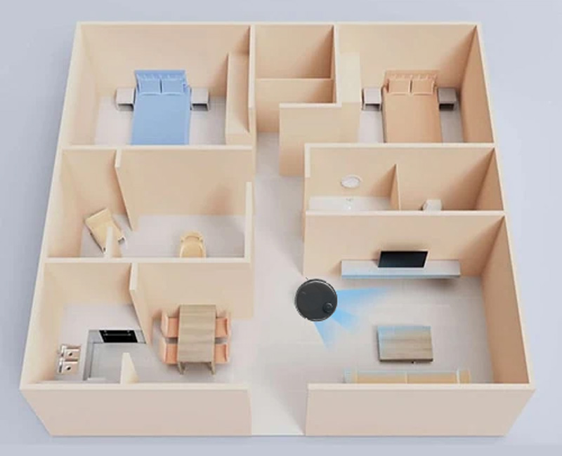 Hệ thống định vị LDS với khả năng quét khoảng cách xung quanh, ghi nhớ vị trí, giúp vẽ bản đồ căn nhà của bạn nhanh và chính xác, hỗ trợ lau nhà sạch nhất có thể.