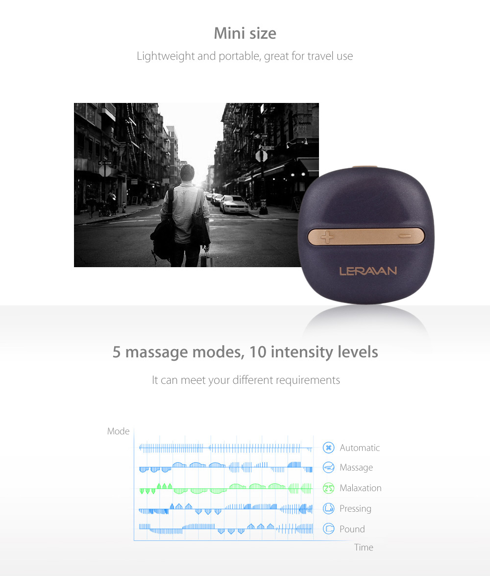 Miếng dán được trang bị công nghê TENS (Transcutaneous Electrical Nerve Stimulation – Kích thích thần kinh bằng dòng điện xuyên qua da) vốn là một phương pháp trị liệu các cơn đau về thể chất. Miếng dán được tích hợp 5 phương pháp bao gồm tự động (automatic), massage, xoa bóp (malaxation), đấm bóp (pressing & pound). Bạn có thể tùy chỉnh phương pháp phù hợp để đạt được hiệu quả như mong muốn.