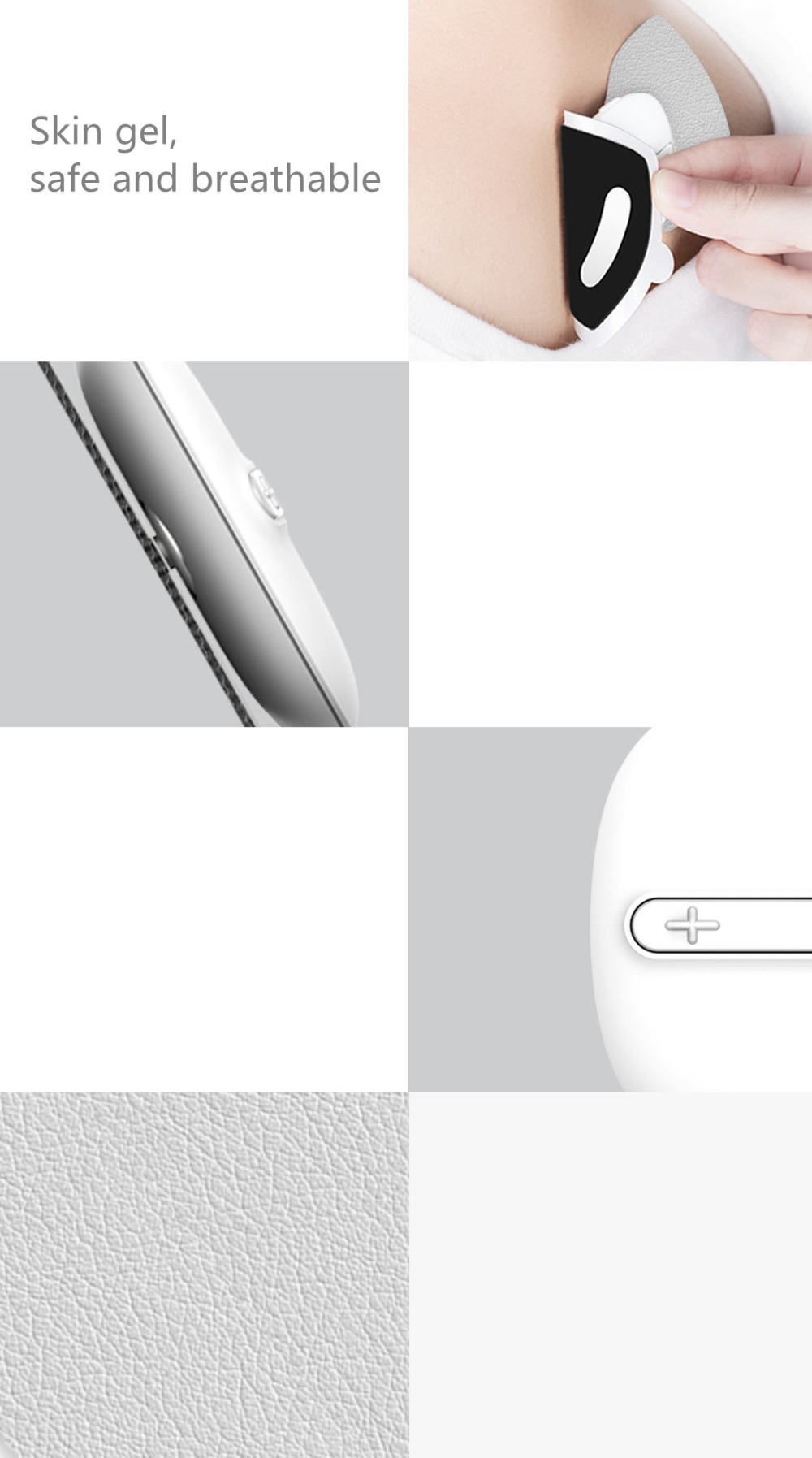 Miếng dán phù hợp dán ở nhiều vị trí trên cơ thể như cánh tay, chân, eo hay cổ. Bằng công nghệ TENS, miếng dán giúp làm dịu đau đớn và mệt nhọc. Cũng chính vì miếng dán dễ mang theo, dễ sạc và có thể sử dụng trong một thời gian dài nên rất thích hợp trở thành người bạn đường tin cậy của bạn để giúp bạn thư giãn sau một ngày làm việc căng thẳng.