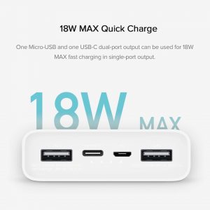 ✔ Là pin sạc dự phòng chính hãng Xiaomi ✔ Dung lượng khủng 20000mAh ✔ 3 cổng sạc ra 2 cổng usb a và 1 cổng usb c ✔ Vỏ bằng nhựa (trọng lượng siêu nhẹ) ✔ Sạc nhanh 2 chiều cả vào pin và xả xạc ra cho các thiết bị khác (chuẩn sạc nhanh Quick Charge 3.0 mới nhất của Qualcomm, công suất 18W) ✔ Sử dụng lõi pin đến từ LG / Panasonic, nhà cung cấp hàng đầu quốc tế về năng lượng (lõi pin Lithium Polymer) ✔ Tương thích hầu hết các thiết bị di động hiện nay như, điện thoại thông minh, máy tính bảng, máy ảnh từ các thương hiệu như Apple, Samsung, Xiaomi, HTC,… sạc được cả tay cầm game ✔ Sử dụng vi mạch điều khiển cao cấp với 9 lớp bảo vệ an toàn (chống đoản mạch, quá nhiệt…) ✔ Đạt chuẩn an toàn có thể mang lên máy bay —————- Thông số chi tiết sạc dự phòng 20000mAh Xiaomi gen 3 18W Thương hiệu: Xiaomi Model: PLM18ZM Loại pin: pin polymer ion lithium Dung lượng: 74Wh 3.7V 20000mAh Dung lượng đáp ứng: 12000mAh (5V/ 3.6A) Giao diện đầu vào: micro USB/ USB-C Giao diện đầu ra: 2 x USB-A/ USB-C Tham số đầu vào: USB-C: 5V-3A, 9V-2A, 12V-1.5A Micro USB: 5V-2A, 9V-2A, 12V-1.5A Tham số đầu ra: Nhiều cổng: 5V-3.6A USB-A: 5V-2.4A, 9V-2A, 12V-1.5A USB-C: 5V-3A, 9V-2A, 12V-1.5A Nhiệt độ làm việc: 5ºC~35ºC Kích thước sản phẩm: 150.6 x 72.2 x 26.3mm Thời gian sạc: Khoảng 11 giờ (bộ sạc 5V/ 2A) Khoảng 6.5 giờ (bộ sạc 18W Pin sạc dự phòng gen 3 vẫn giữ nguyên thiết kế thanh lịch nhưng không kém phần tinh tế. Vẫn hình trụ nguyên khối cùng sắc trắng tinh khôi, bề mặt được phủ lớp sơn mờ cao cấp, cho khả năng chống bám bẩn và chống bám vân tay tốt -Bên cạnh đó dù sở hữu dung lượng lớn nhưng pin sạc 20000mAh Xiaomi vẫn có kích thước khá nhỏ gọn chỉ 150.6 x 72.2 x 26.3mm, sẽ không chiếm quá nhiều diện tích ngay cả khi bạn để trên bàn làm việc hoặc bỏ vào balo mang đi khắp nơi. Pin sạc được gia công từ vật liệu PC+ABS cao cấp, giúp tăng độ bền nhưng vẫn đảm bảo trọng lượng nhẹ cho pin sạc.