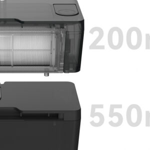 Bên cạnh đó, bình chứa nước phụ 550ml được thiết kế đặc biệt giúp robot thích hợp làm việc với ngôi nhà có diện tích lớn hơn. Máy bơm áp suất không đổi điện tử cũng được trang bị cho robot này, giúp cho robot bơm chính xác lượng nước đủ dùng, hạn chế tình trạng rò rỉ nước trong quá trình lau dọn.