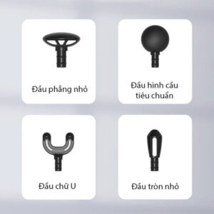 – Súng massage cầm tay có 4 đầu massage khác nhau, hỗ trợ nhu cầu mát xa chuyên sâu.