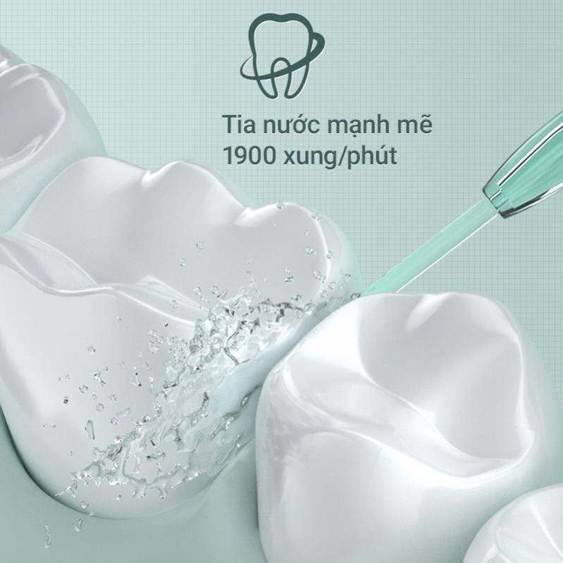 Vòi phun mạnh mẽ, với 1900 xung mỗi phút, giúp loại bỏ 99,99% mảng bám một cách tối ưu. Bình chứa dung tích 130ml, có thể sử dụng trong 1 lần mà không cần đổ thêm nước. Bình chứa dễ tháo lắp, giúp vệ sinh sau mỗi lần sử dụng.