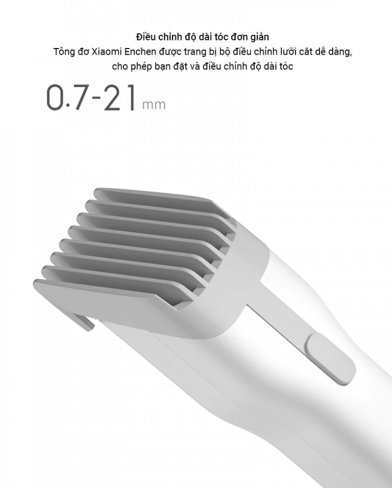 Tông đơ cắt tóc Xiaomi Enchen Boost được trang bị thiết kế lược định vị kiểu trượt với khả năng khóa ở độ dài từ 0.7-21mm. Bạn có thể dễ dàng tùy chỉnh chiều dài tóc cần cắt một cách cố định với điều chỉnh thay đổi 1 nút đơn giản. Ngay cả khi không có kinh nghiệm, chuyên môn tạo mẫu tóc bạn vẫn có thể sử dụng một cách thuần thục theo ý muốn.